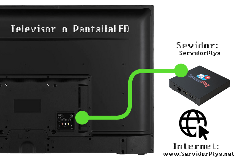 ServidorPlay proporciona una pequeña pieza de hardware llamada reproductor de señales digitales, que se conecta a la parte posterior de la pantalla con HDMI. Conectará ese reproductor de señales digitales a Internet (ya sea a través de Ethernet o WiFi). Una vez que el reproductor de señales digitales esté configurado, puede iniciar sesión en nuestro software basado en la nube en línea para realizar actualizaciones desde cualquier lugar donde se encuentre.